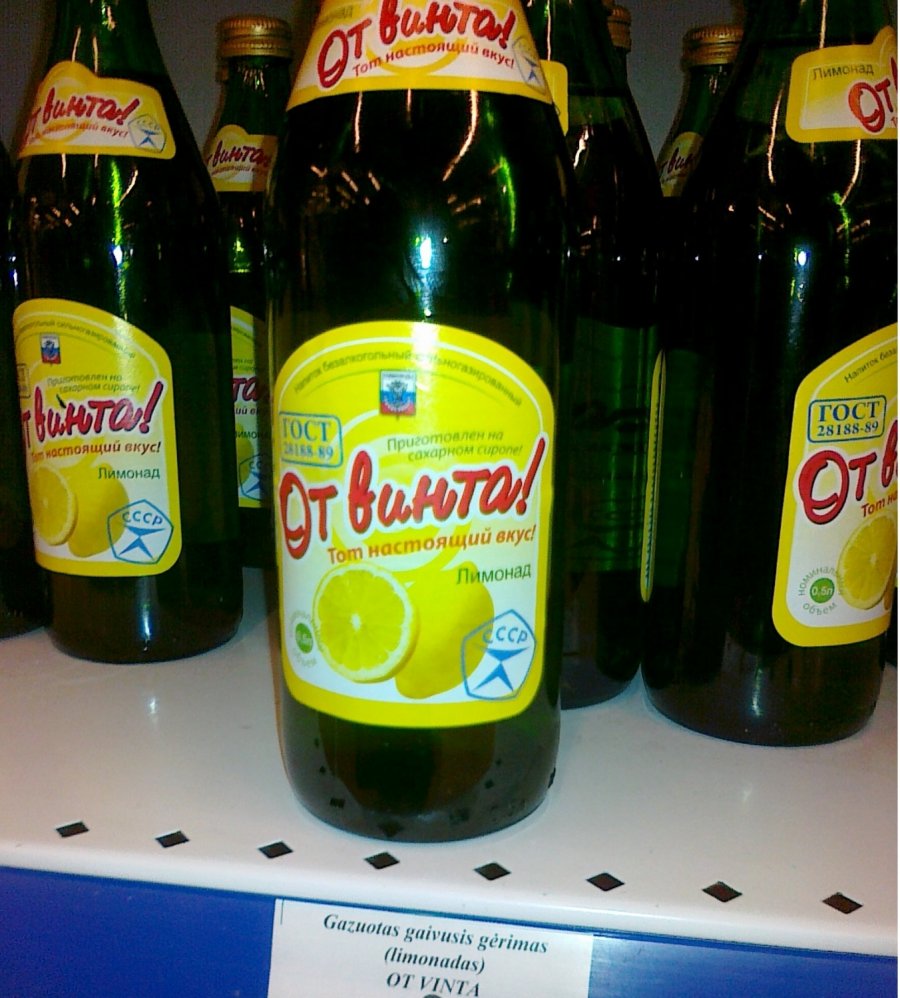 Человек, приславший фотографию, сказал, что напитком торгуют уже долгое время. «Я заметил российский лимонад со знаком СССР, он продается уже пару месяцев», – написал он. На присланной фотографии – этикетка лимонного напитка «От винта» со знаком, хорошо знакомым людям, жившим в советское время – знаком качества товаров, изготовленных в СССР.